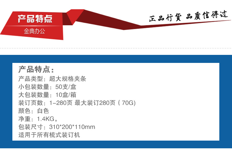 当前位置: 首页 > 专用耗材 > 装订耗材 > 金典28mm白色 夹边条(50支/盒)